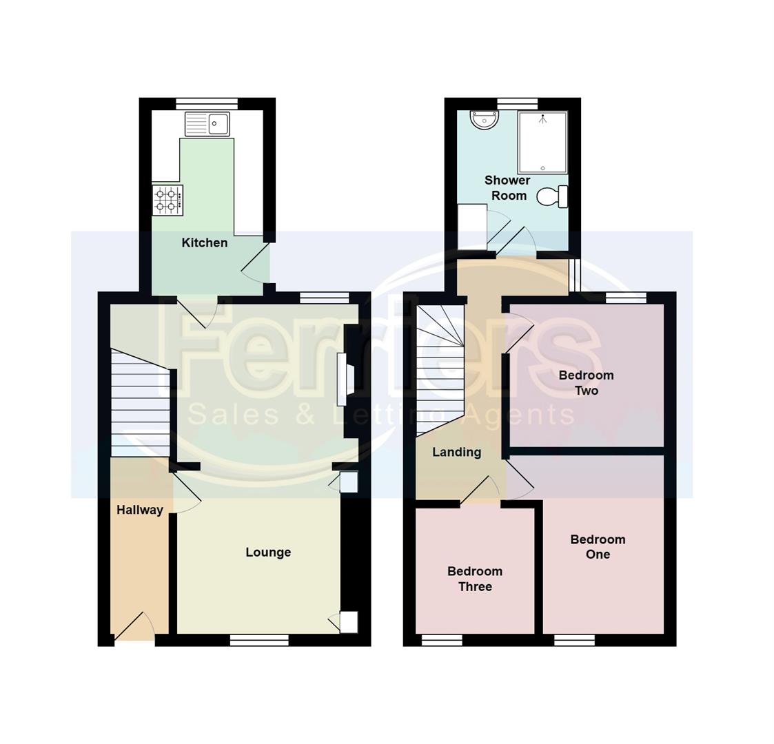 Textured ceiling, skimmed and PVC panelled walls, vinyl flooring, storage cupboard, radiator, three piece suite comprising a shower cubicle, low level W.C. and a pedestal wash hand basin, uPVC double glazed window with obscured glass to the rear.